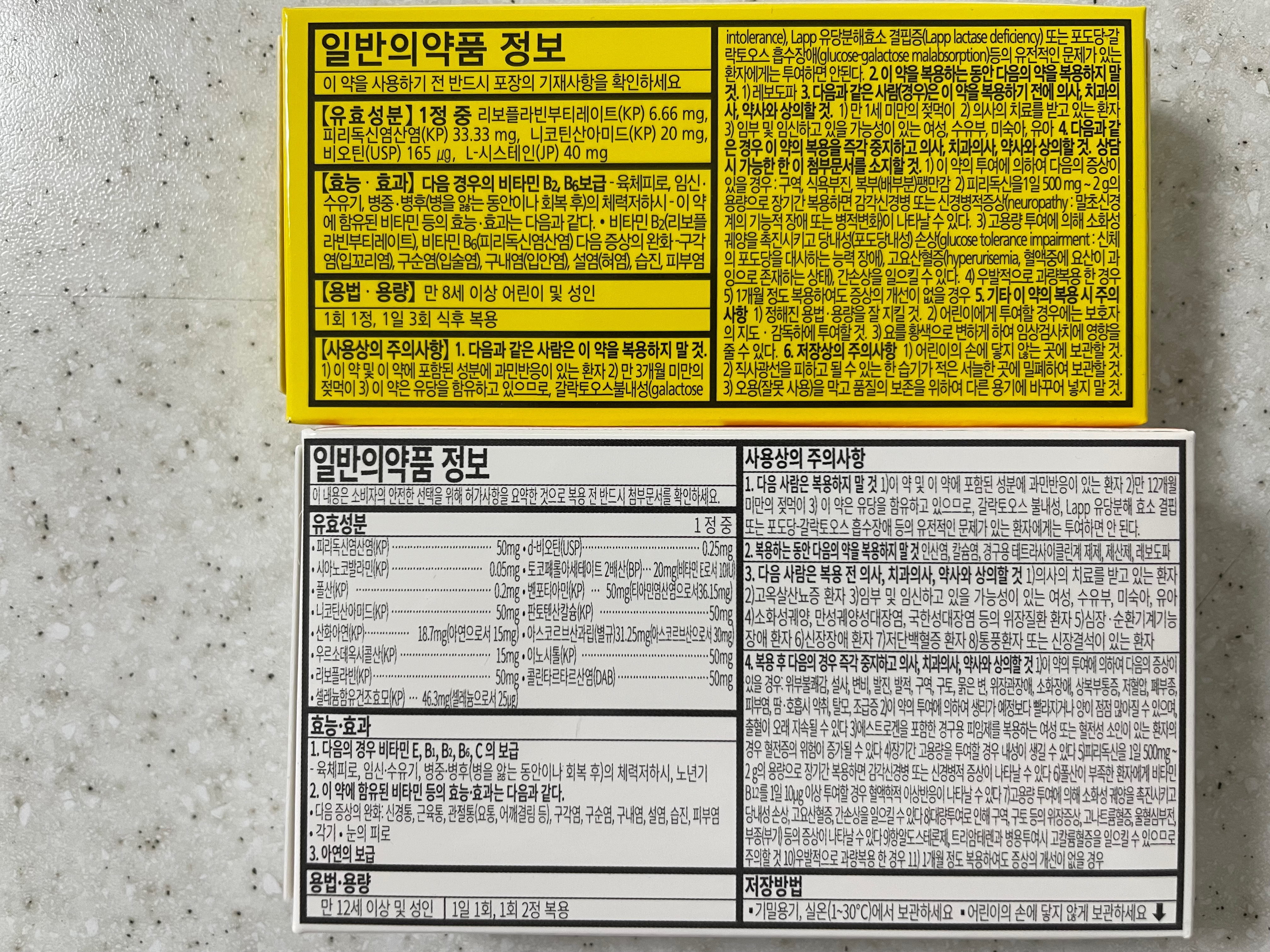 구강 염증에 좋은 비타민B2, 비타민B6가 들어가 있는건 동일하지만
