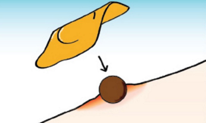 종기가 터진 후에는 함께 삽입된 동그란 환(발근고*)를 함께 삽입하면 돼요.