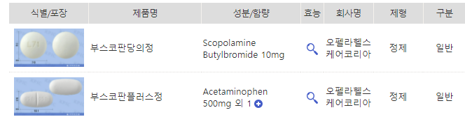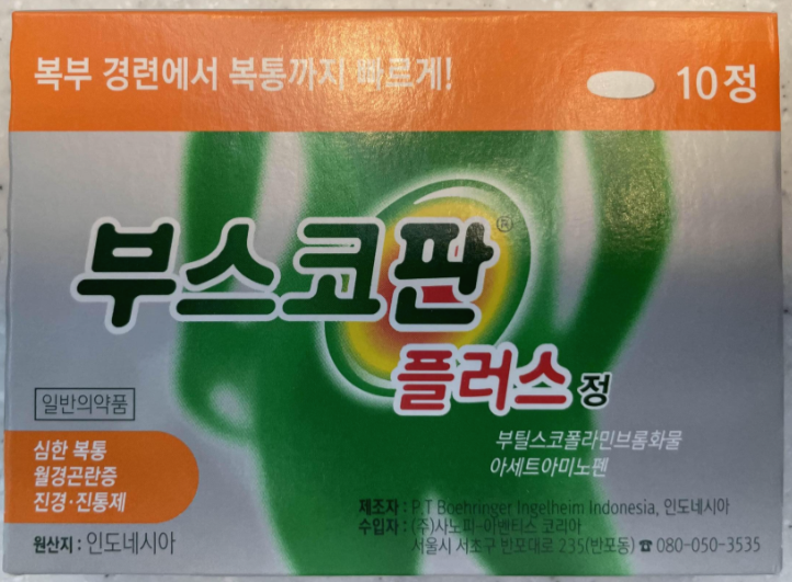 일반적으로 생리통에는 부스코판 플러스를 추천드리는 편이에요.