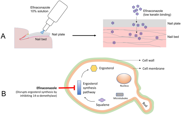 Efinaconazole은 진균의 생존에 필수적인 세포막 성분