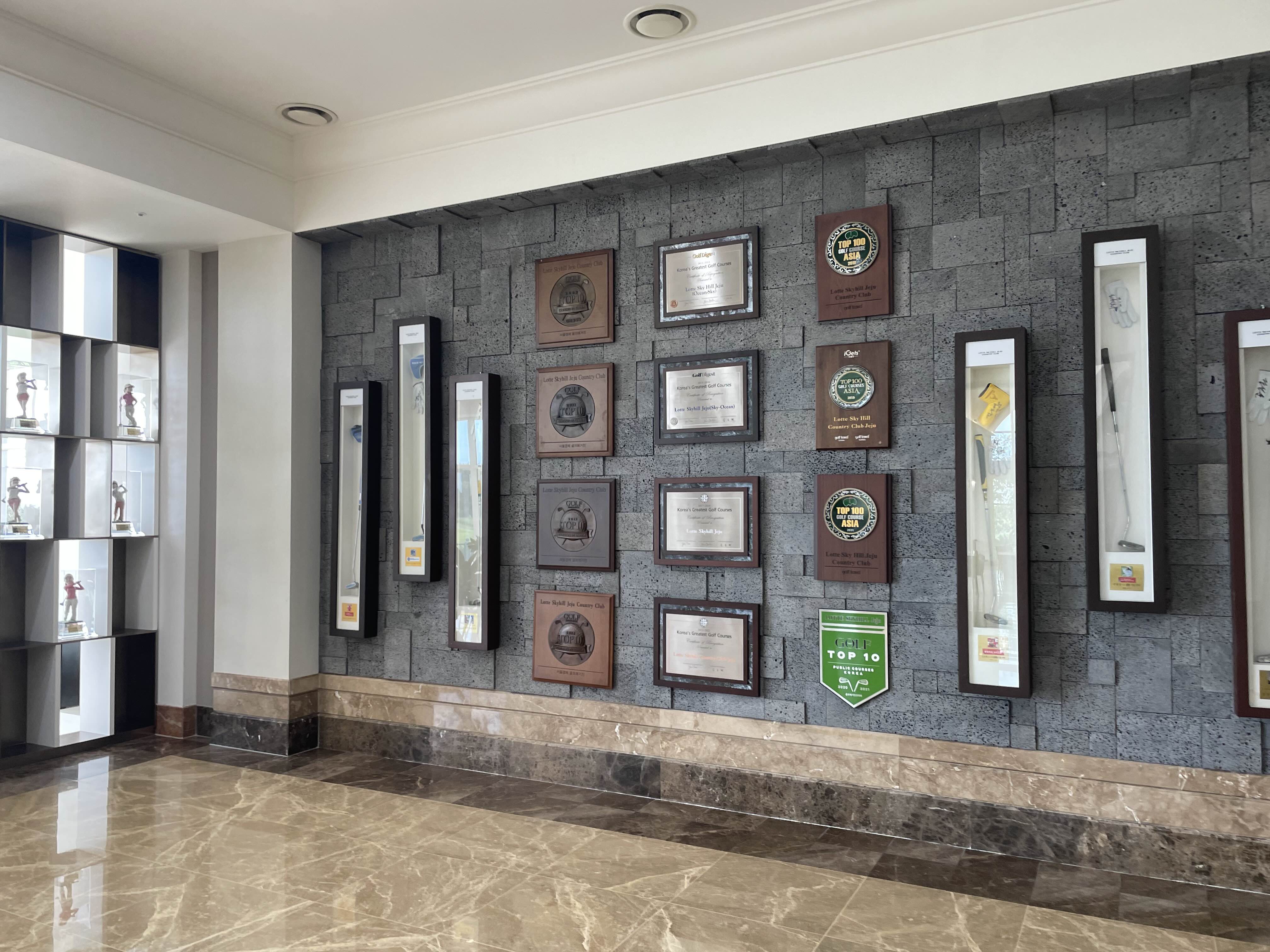 벽면에 상패와 선수들 클럽을
