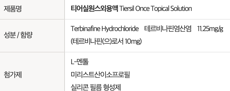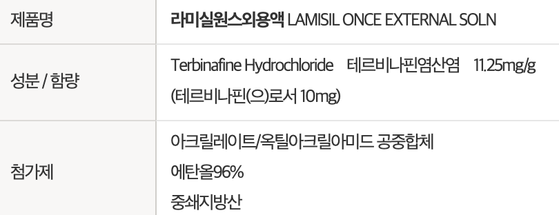 | 용량 | 4.0g (테르비나핀 40mg) | 4.5g (테르비나핀 45mg) |