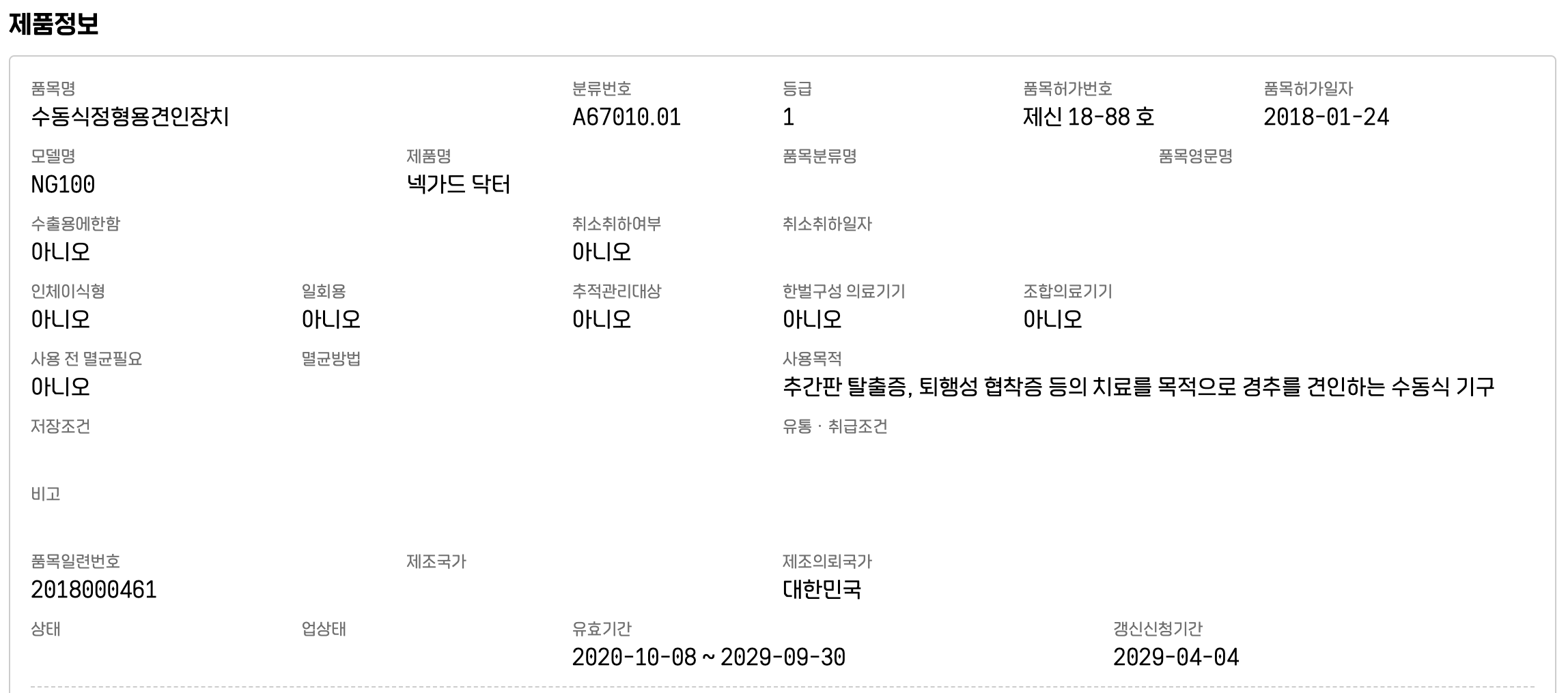 의료기기 등급은 1등급으로