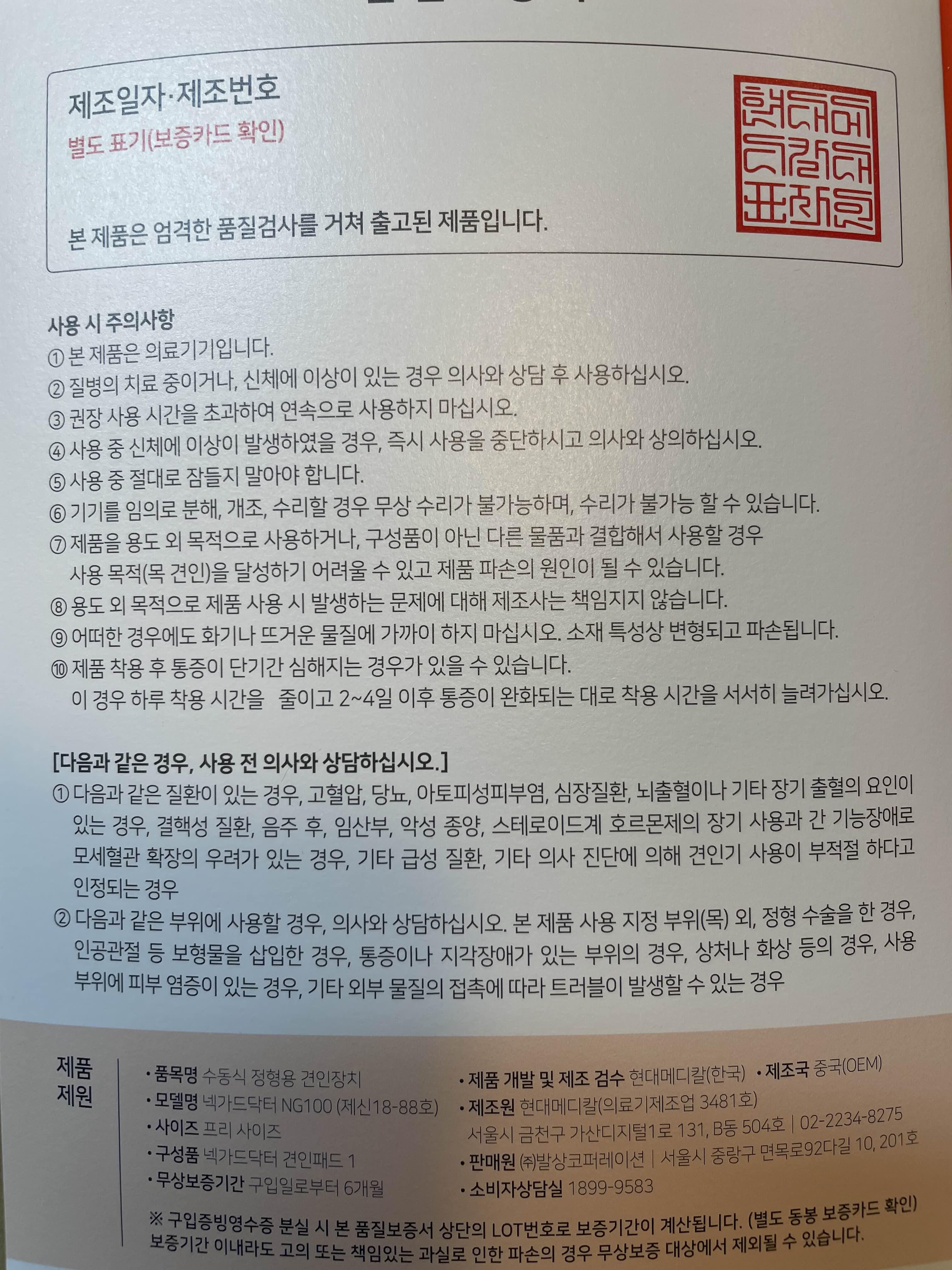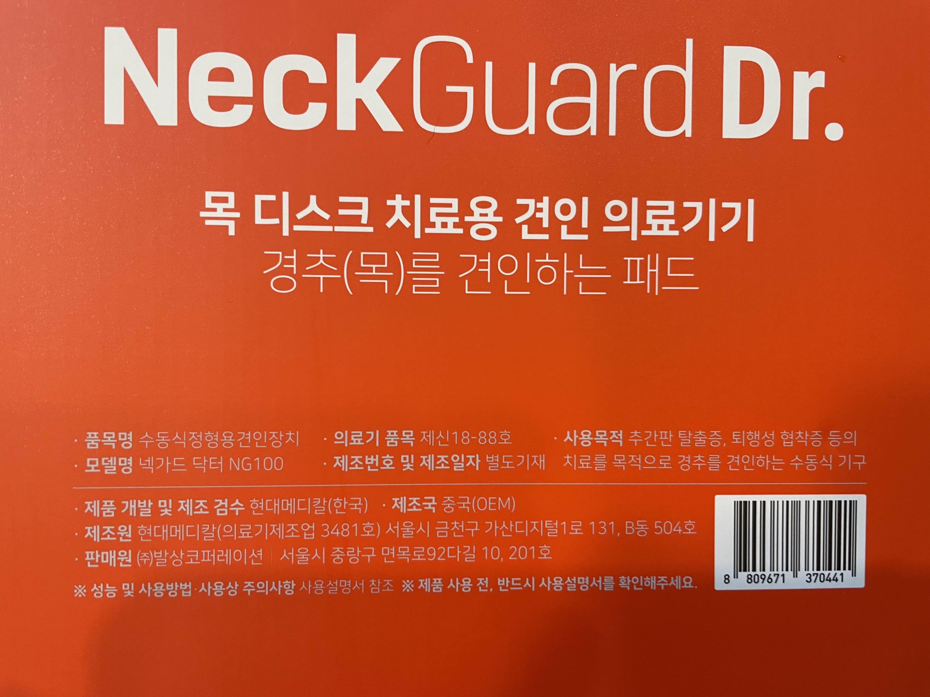 현대메디칼 넥가드닥터 NG100 목디스크 견인 치료기 목디스크견인기 : 발상코퍼레이션